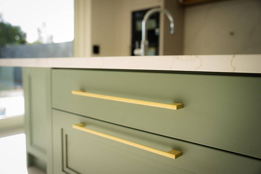 We began with a full internal strip-out, creating a blank canvas for both a single- and double-storey rear extension. Significant structural and steel work allowed us to create a truly open-plan kitchen, dining and living area that forms the heart of the home. A brand-new kitchen anchors this space, paired with a redesigned utility room to support busy family life. Light floods in through Munster Joinery triple-glazed windows and a dramatic six-metre sliding door that connects the interior seamlessly to the garden.